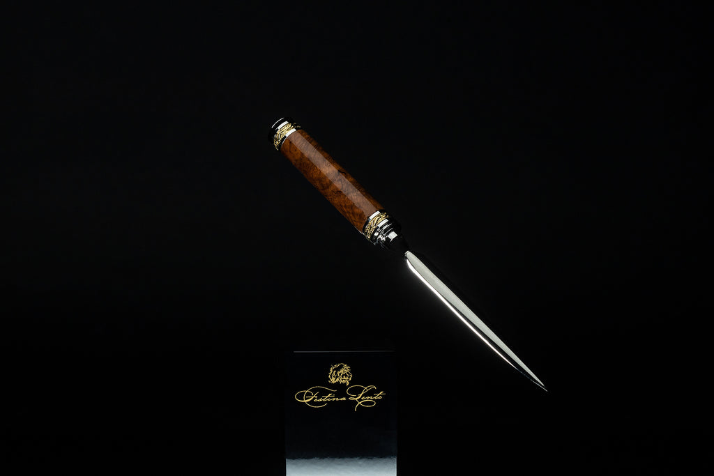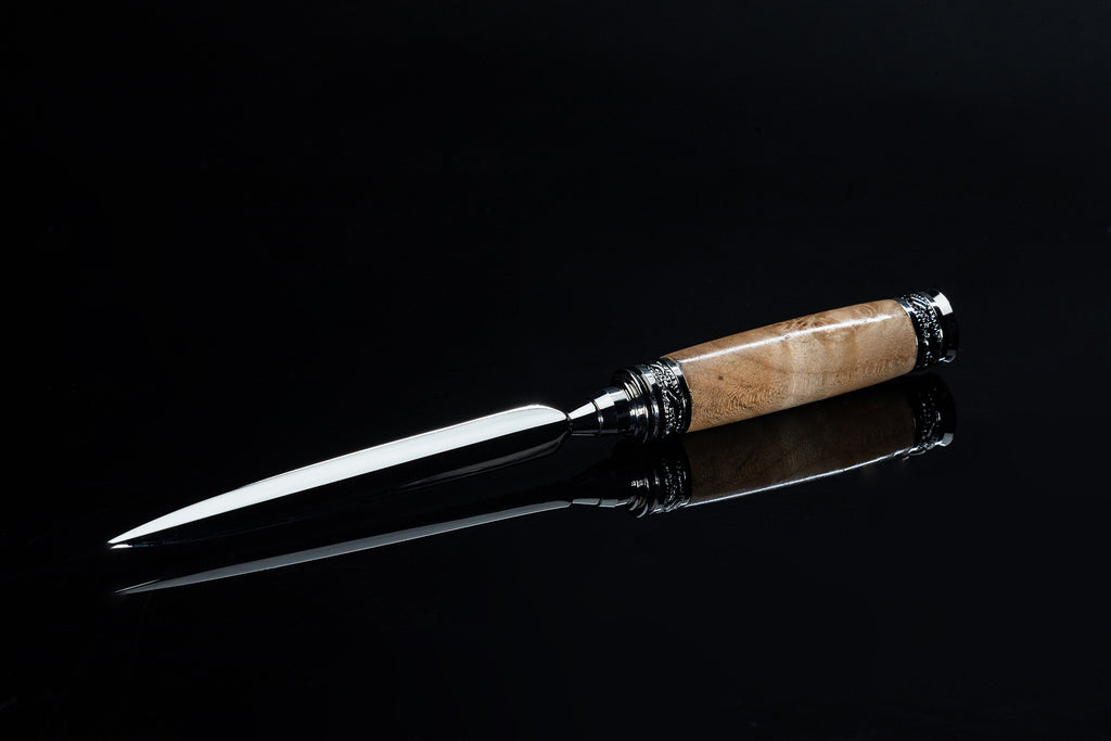 To complete the desk set for anyone with either the slim or re-vera, the re-vera letter opener will make every envelope open in style. The blade of the re-vera letter opener is engravable to add that touch of personalization to each individual who will call it their own.